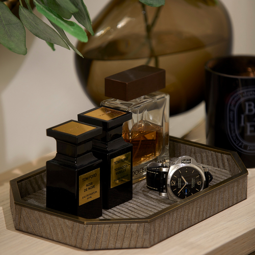 "I love the Elemental Watchbox as I can keep both my watches and cufflinks stored safely in there with lock and key. It really feels like an heirloom piece as the quality and finsih is incredible. It is wrapped in the LHL sIgnature texture with a bronze trim and lined with a very luxe soft faux suede. I also like the Adler leather range as I work from home a lot, so having good deskware is important. The Adler Leather Stacking Desk Tray and Desk Pad take pride of place on my desk."